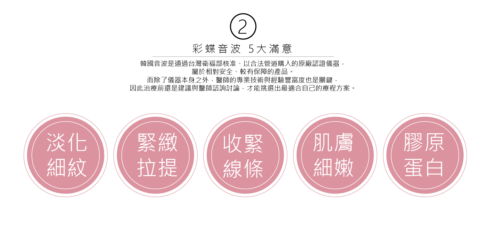①淡化細紋、②緊緻拉提、③收緊線條、④膠原蛋白、⑤肌膚細嫩
